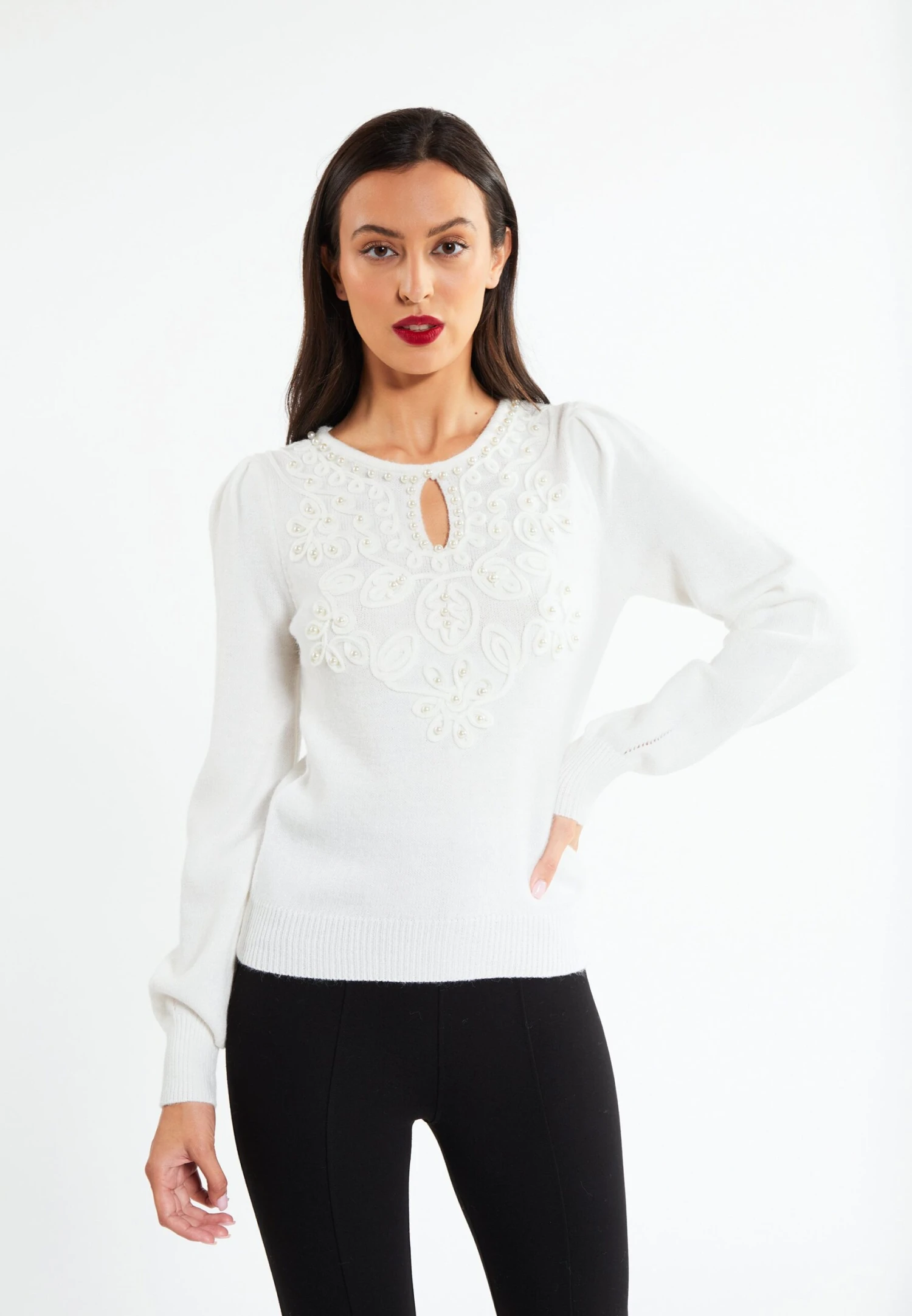 Faina Mit Perlen TuxeMaglioneWeiss Donna Maglieria FAB21I08Z-A11